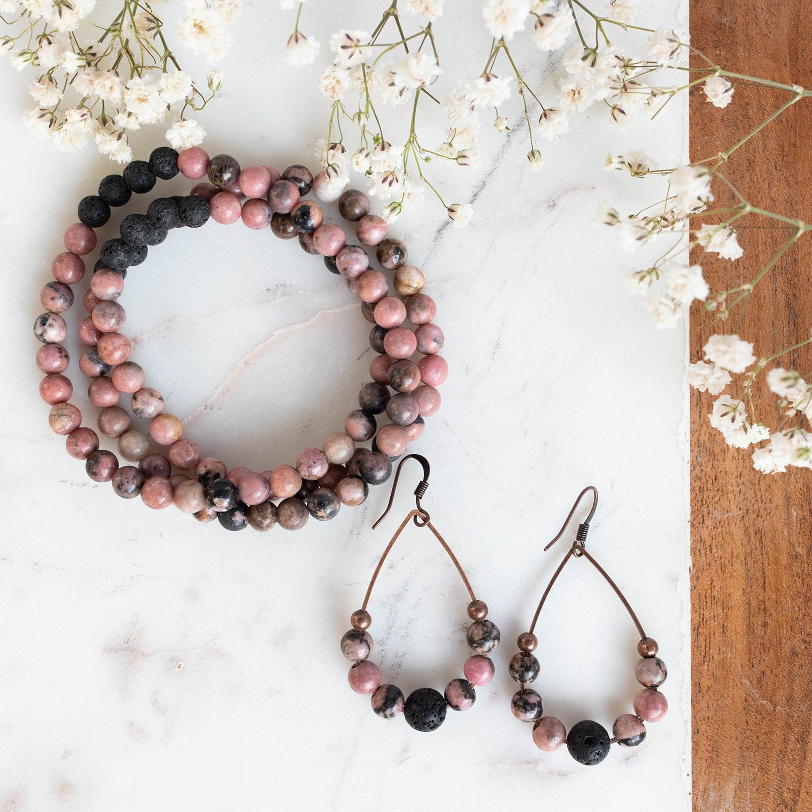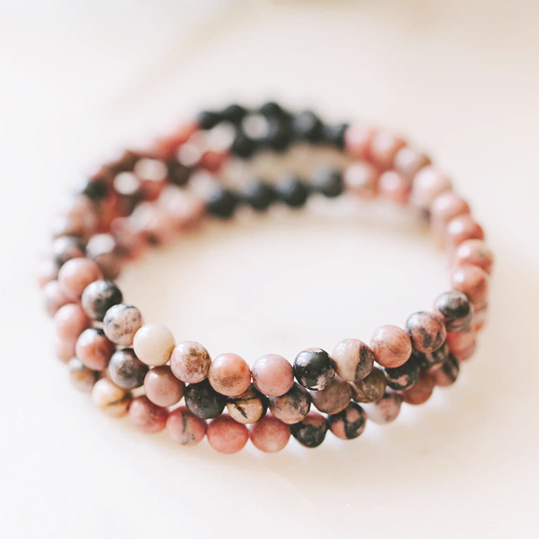 The Love Wrap captures the natural beauty of genuine Rhodonite in peaceful tones of rose & cappuccino with charcoal accents - Pair them with our Love Earrings for a matching duo - Stone colors may vary slightly making each piece one of a kind