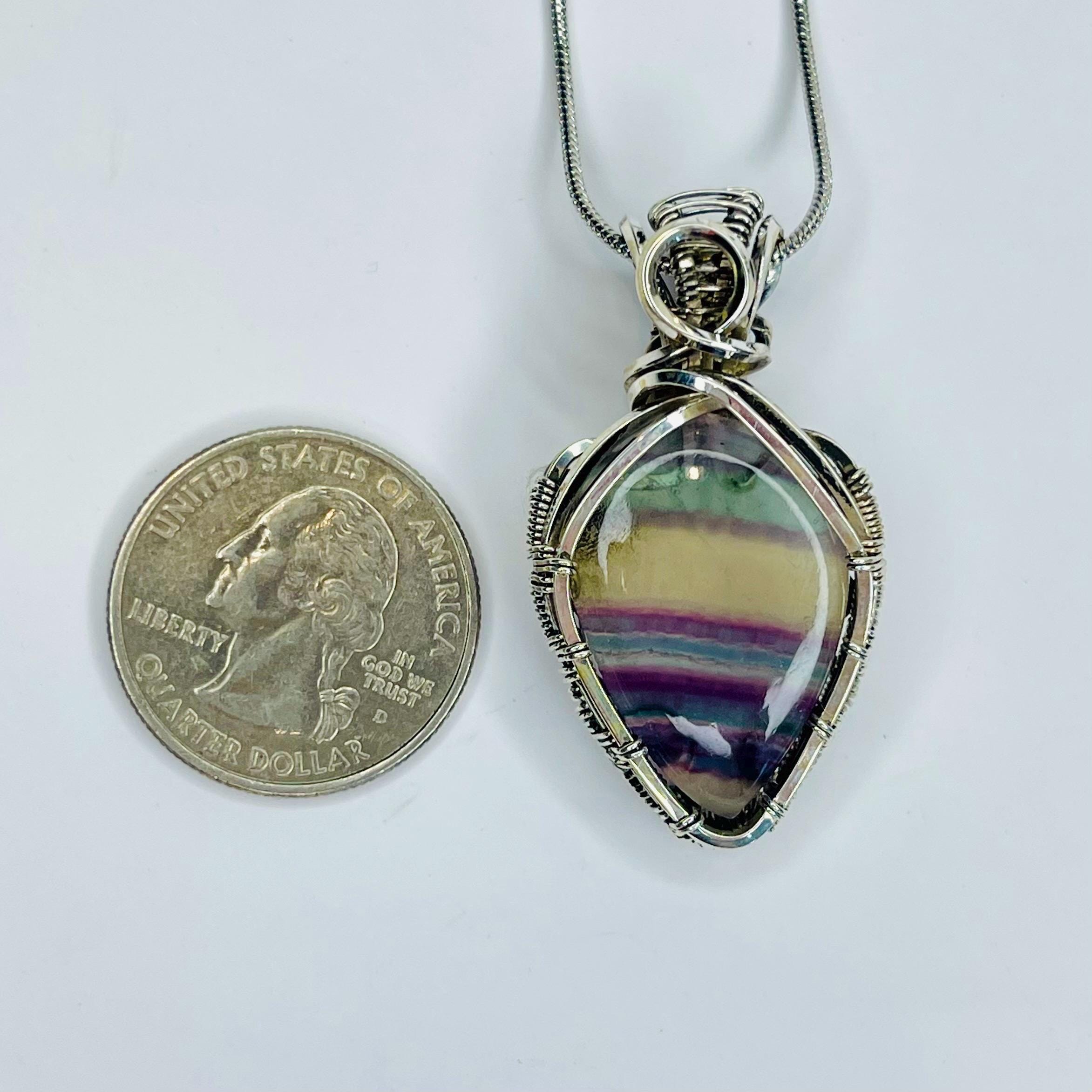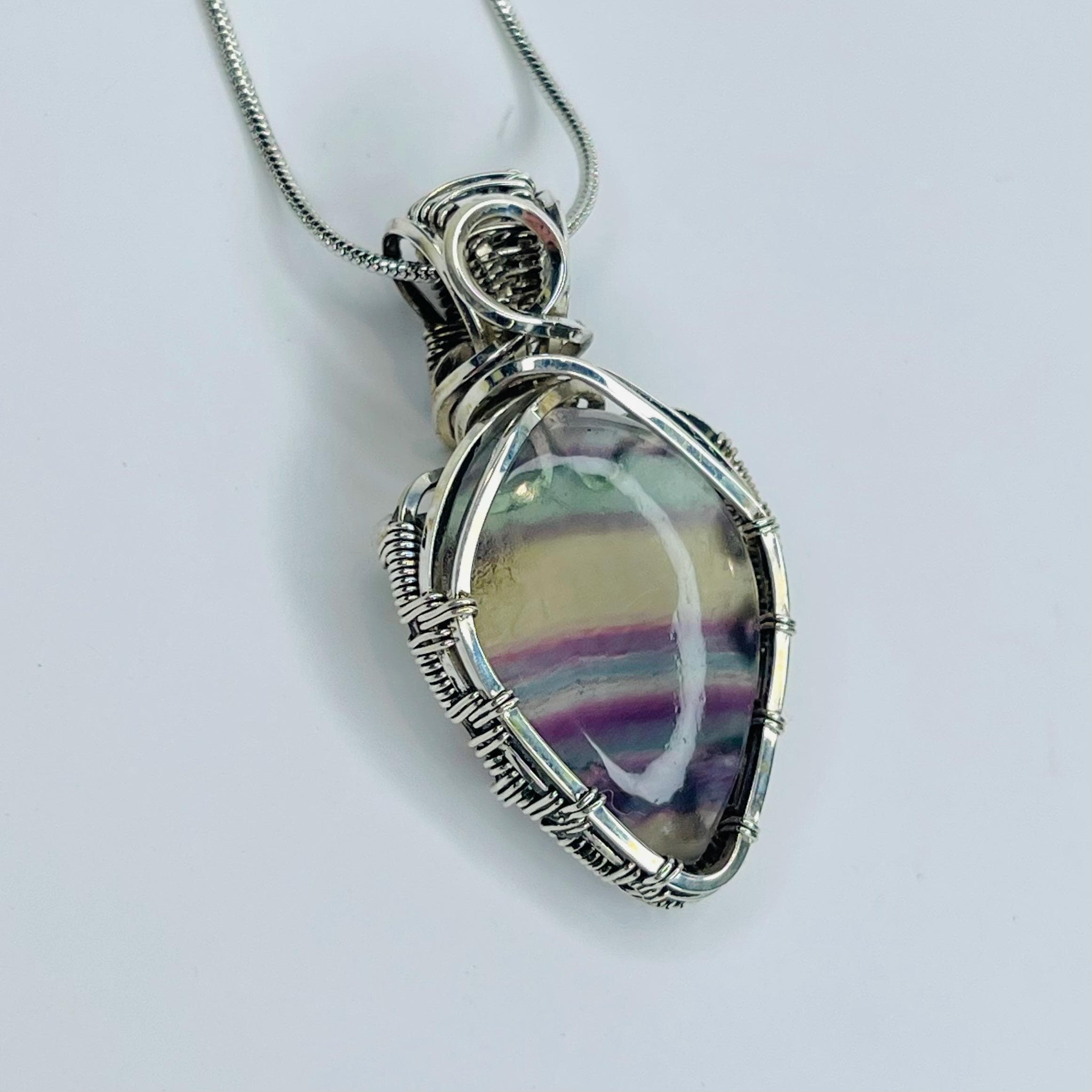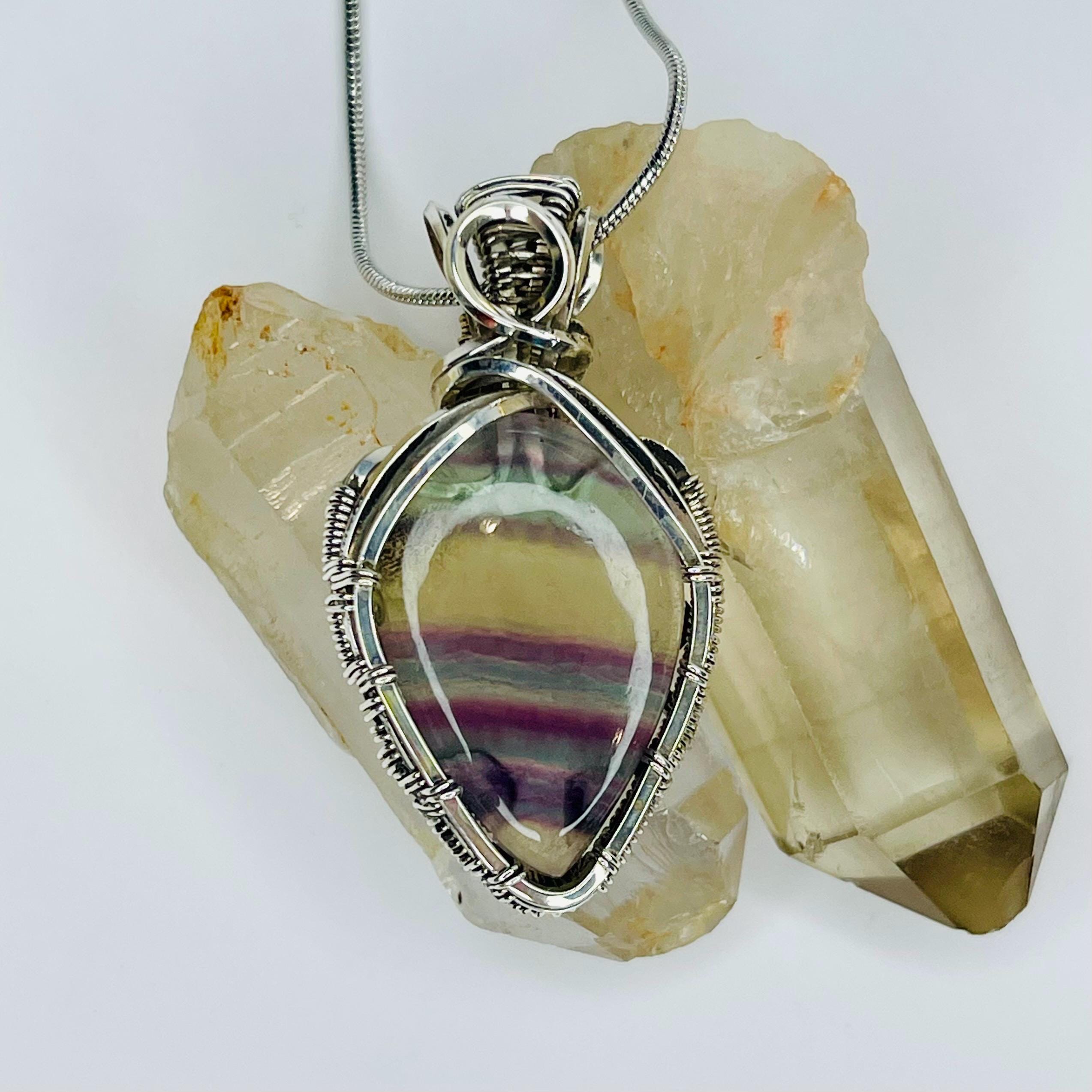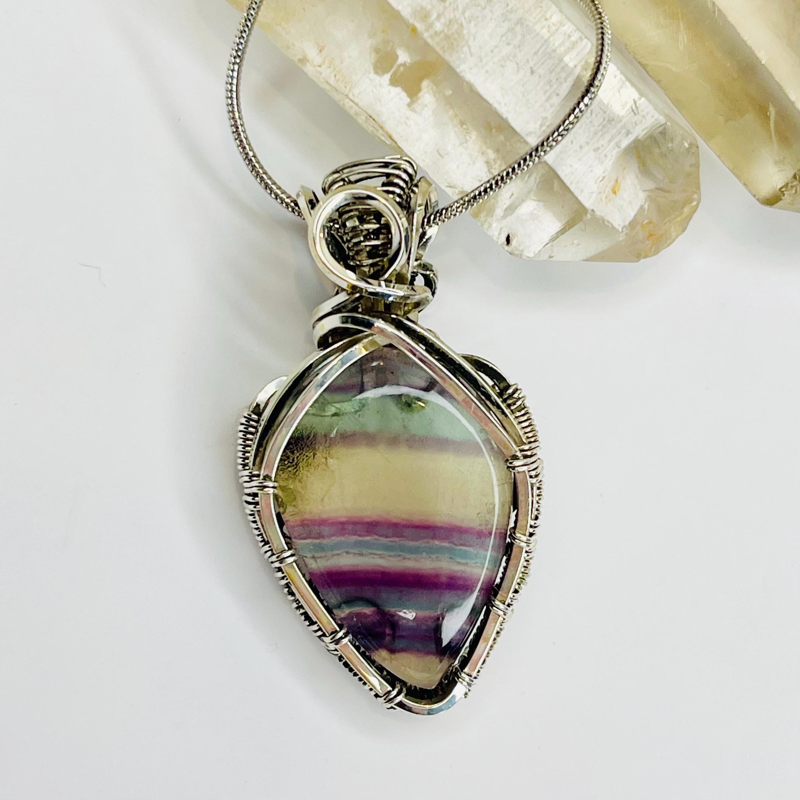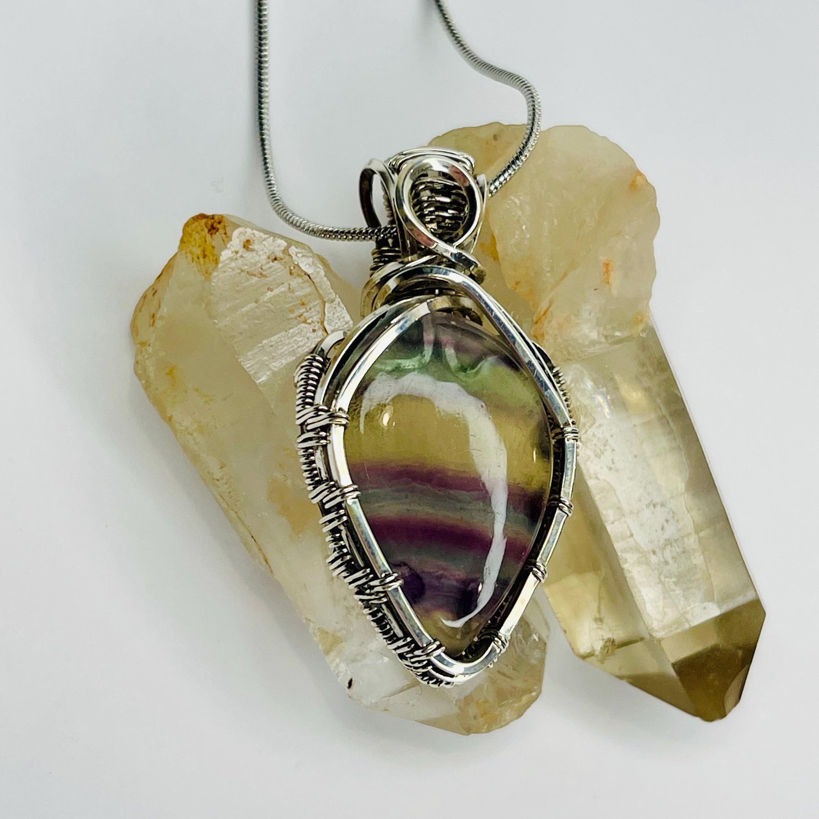 Handmade Boho Fluoride & Silver Wire Wrapped Pendant
