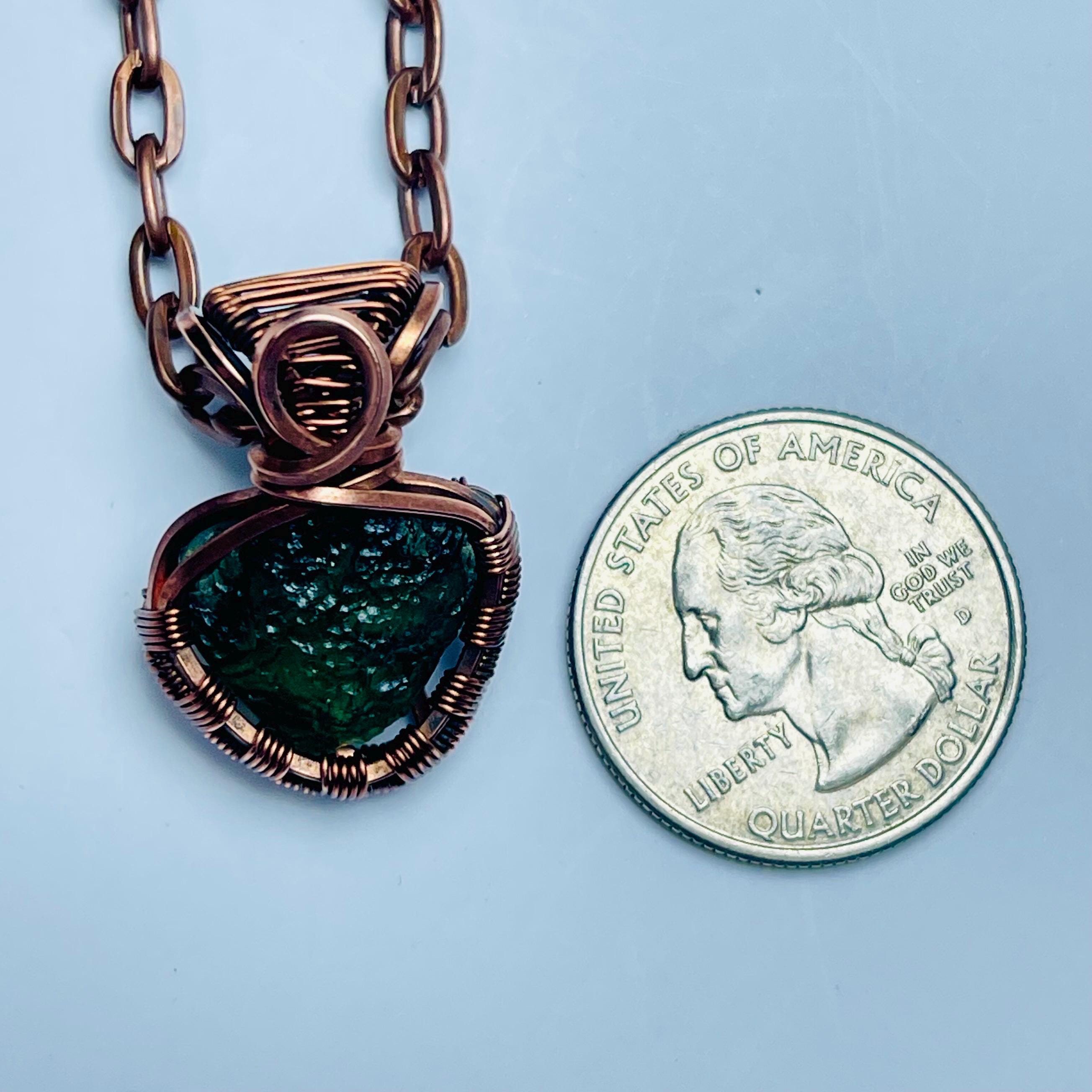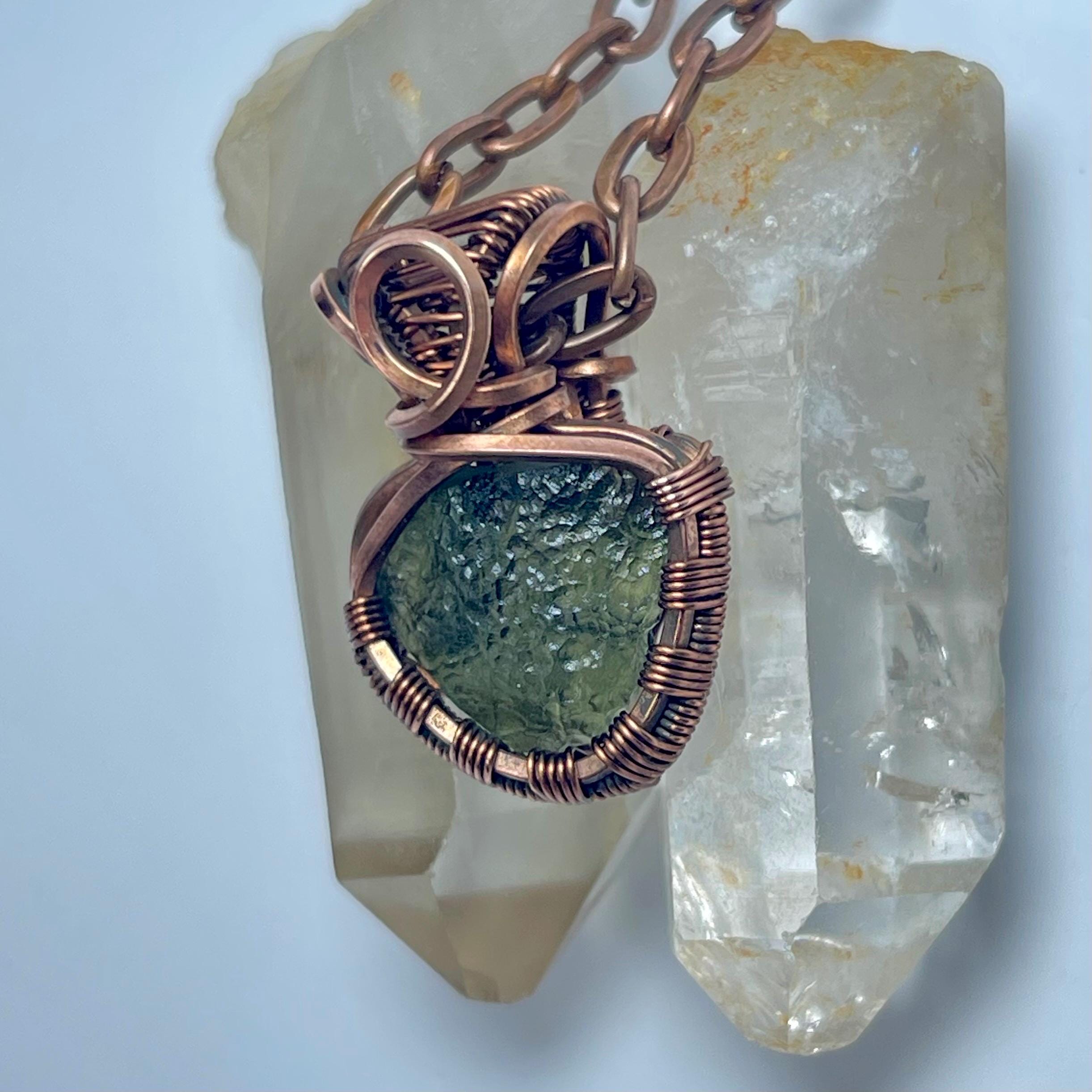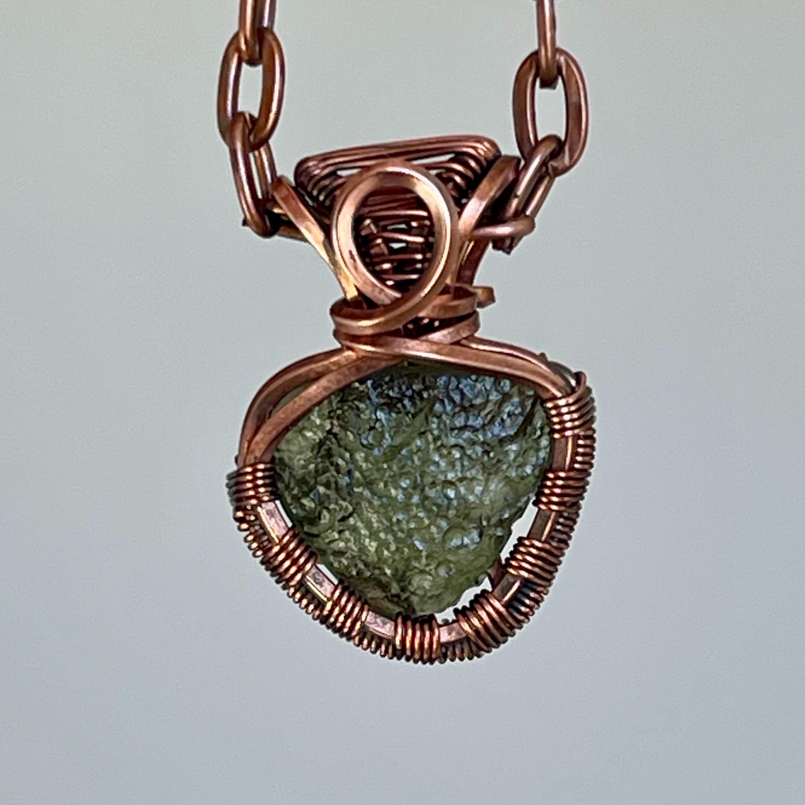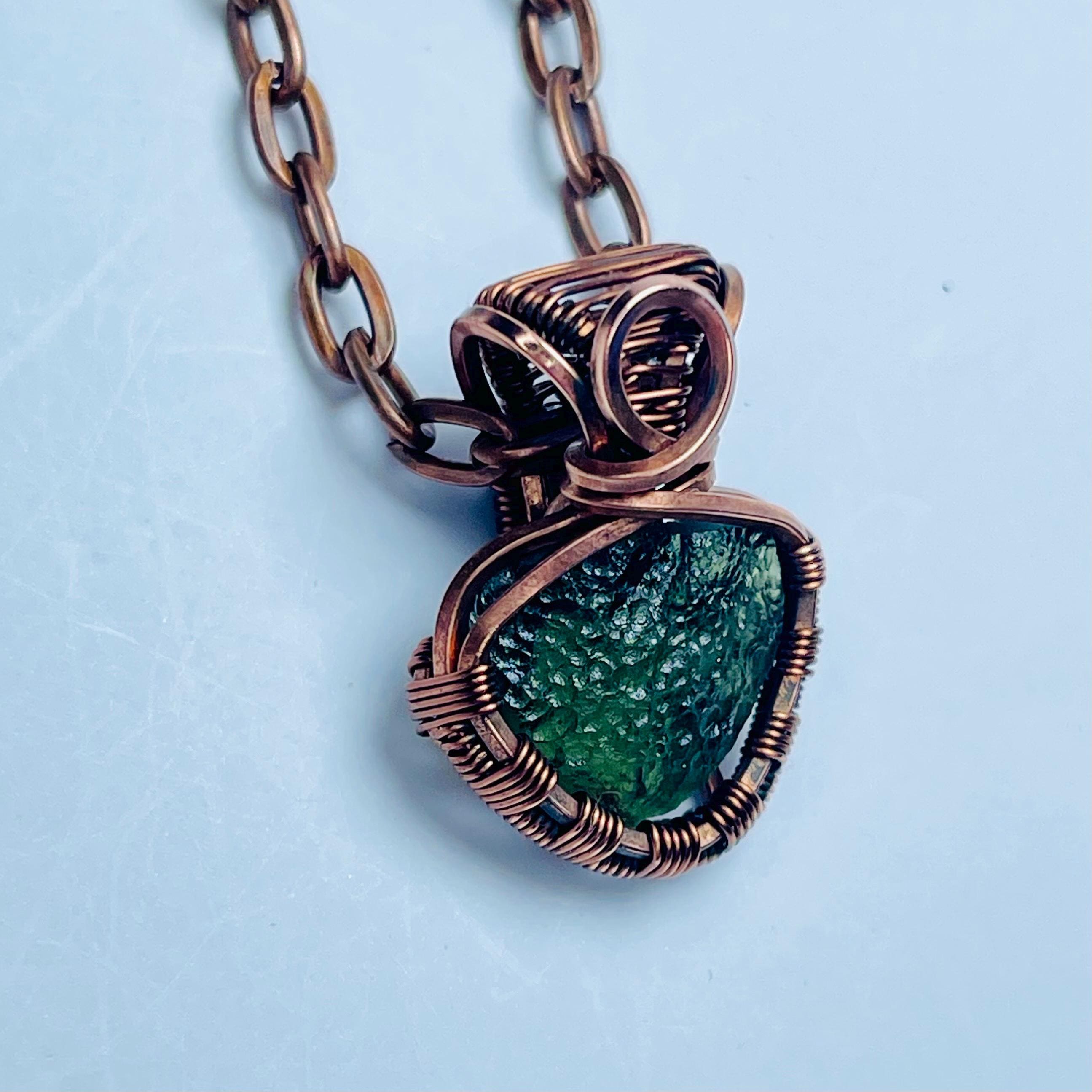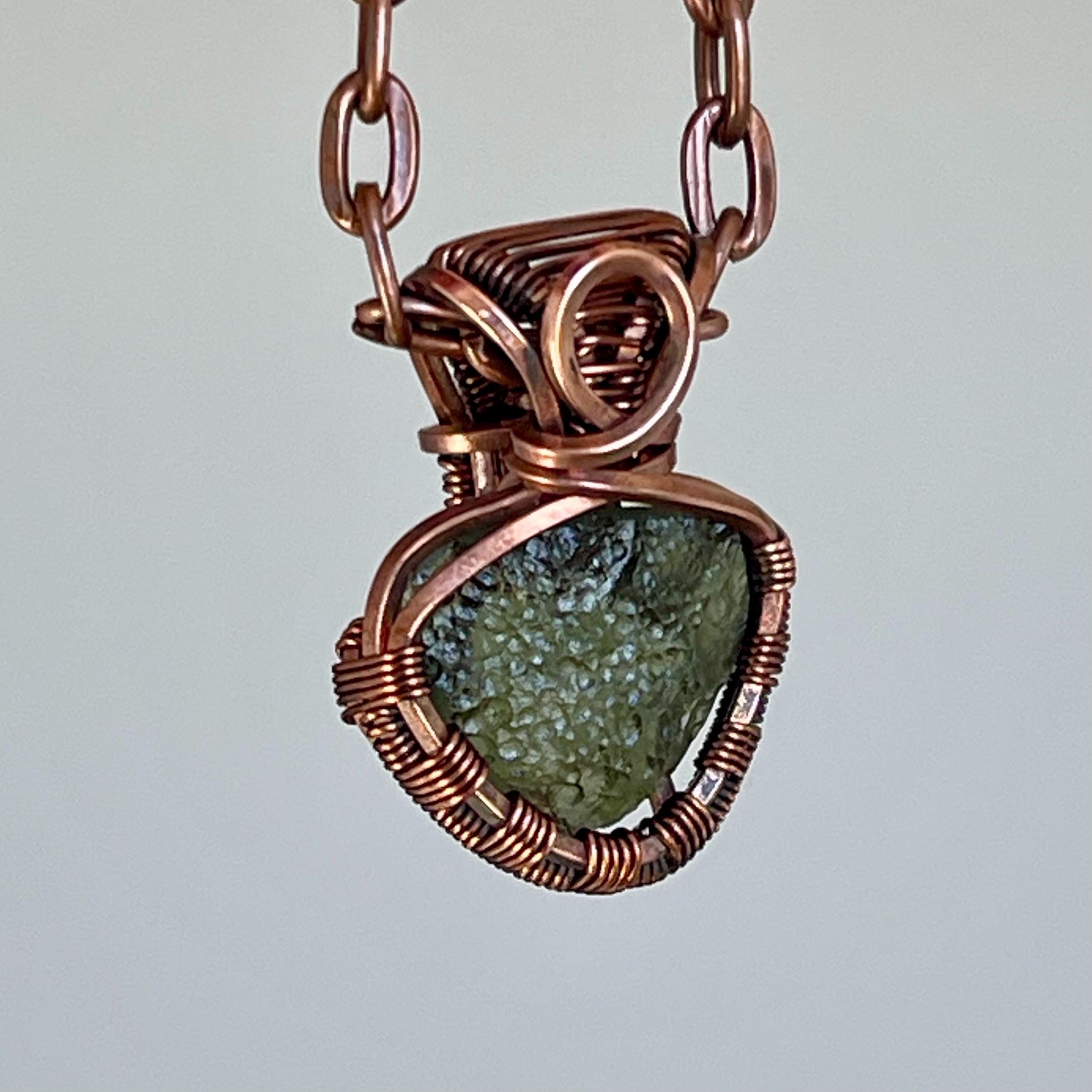 Moldavite Copper Pendant Necklace: Wire Wrapped Tektite, Healing Crystal