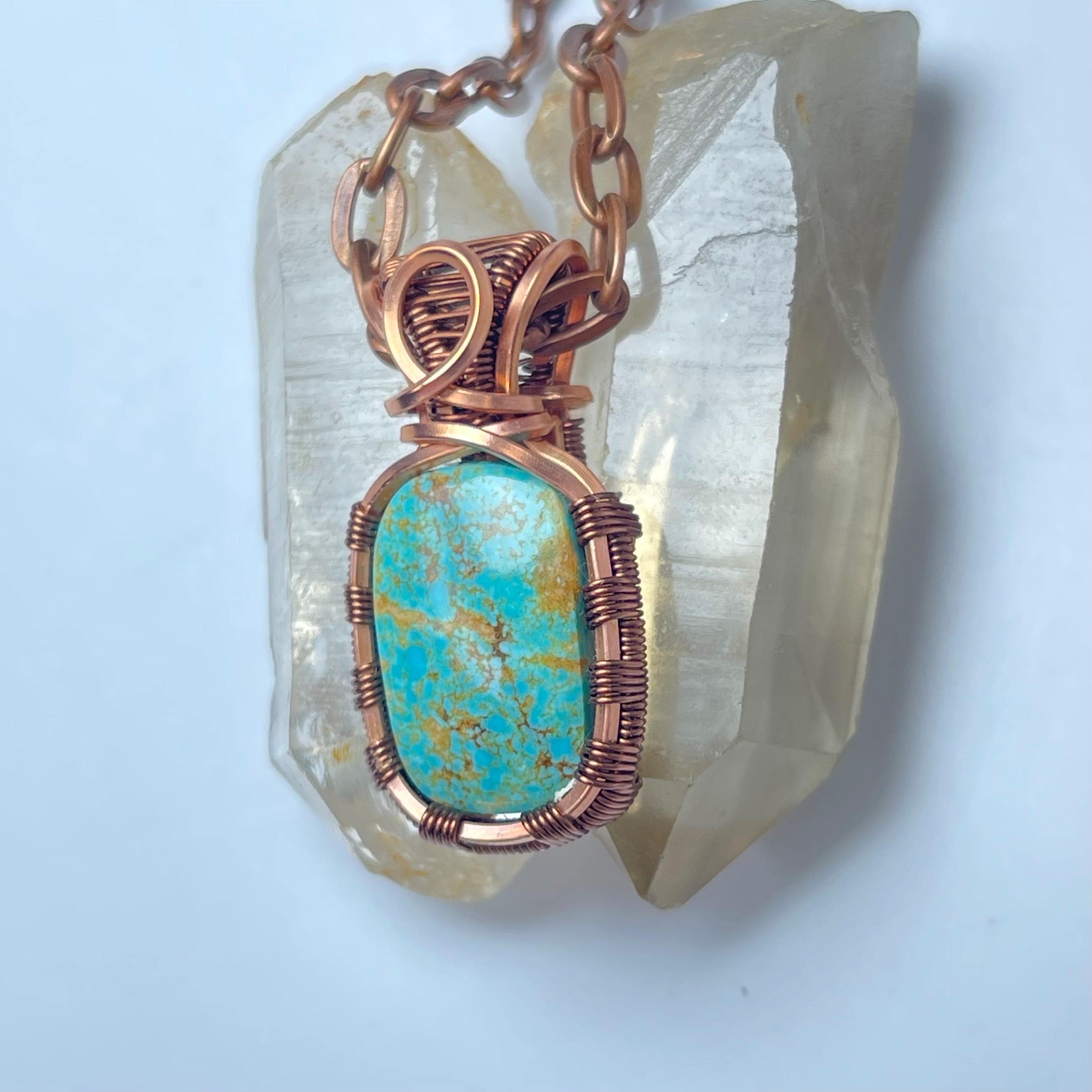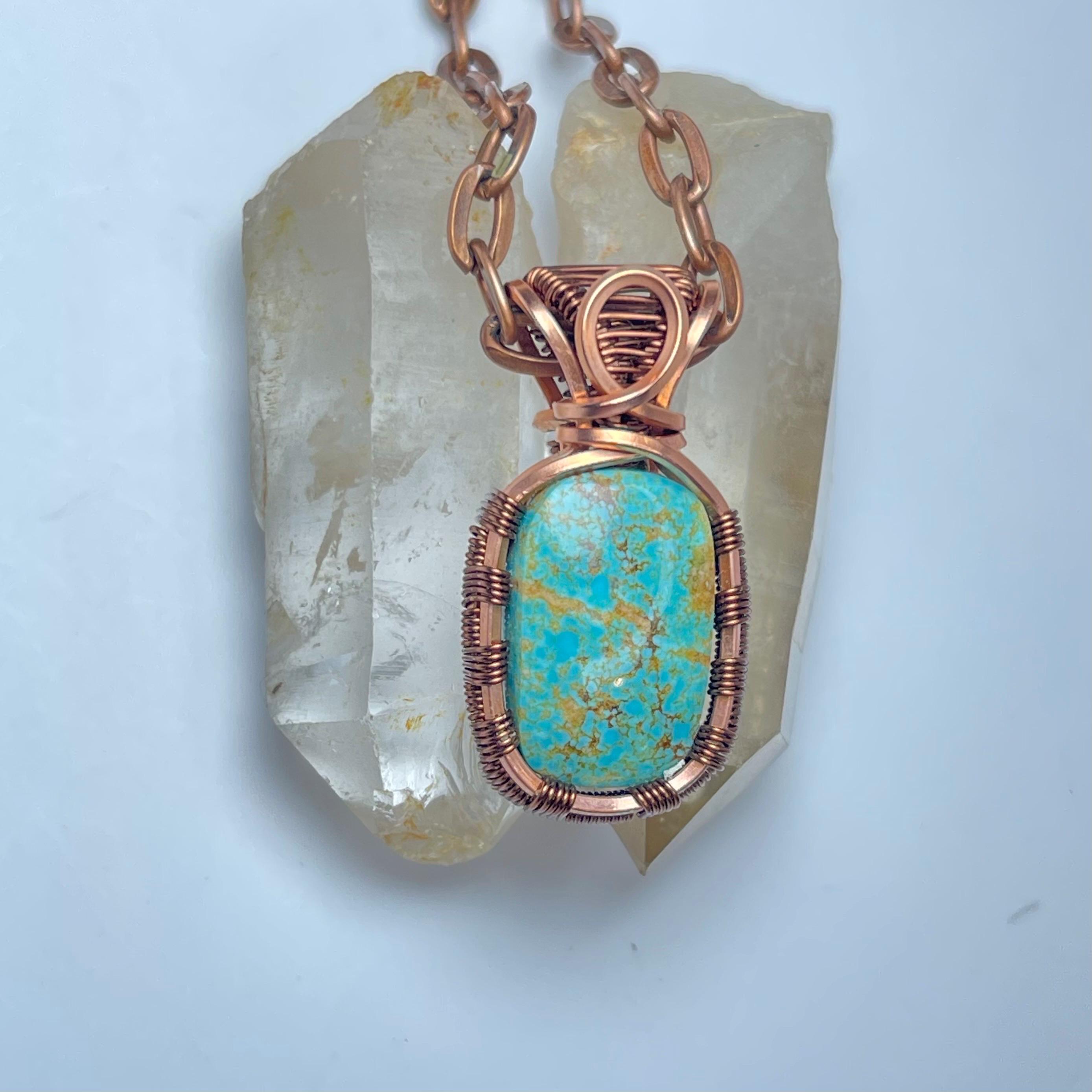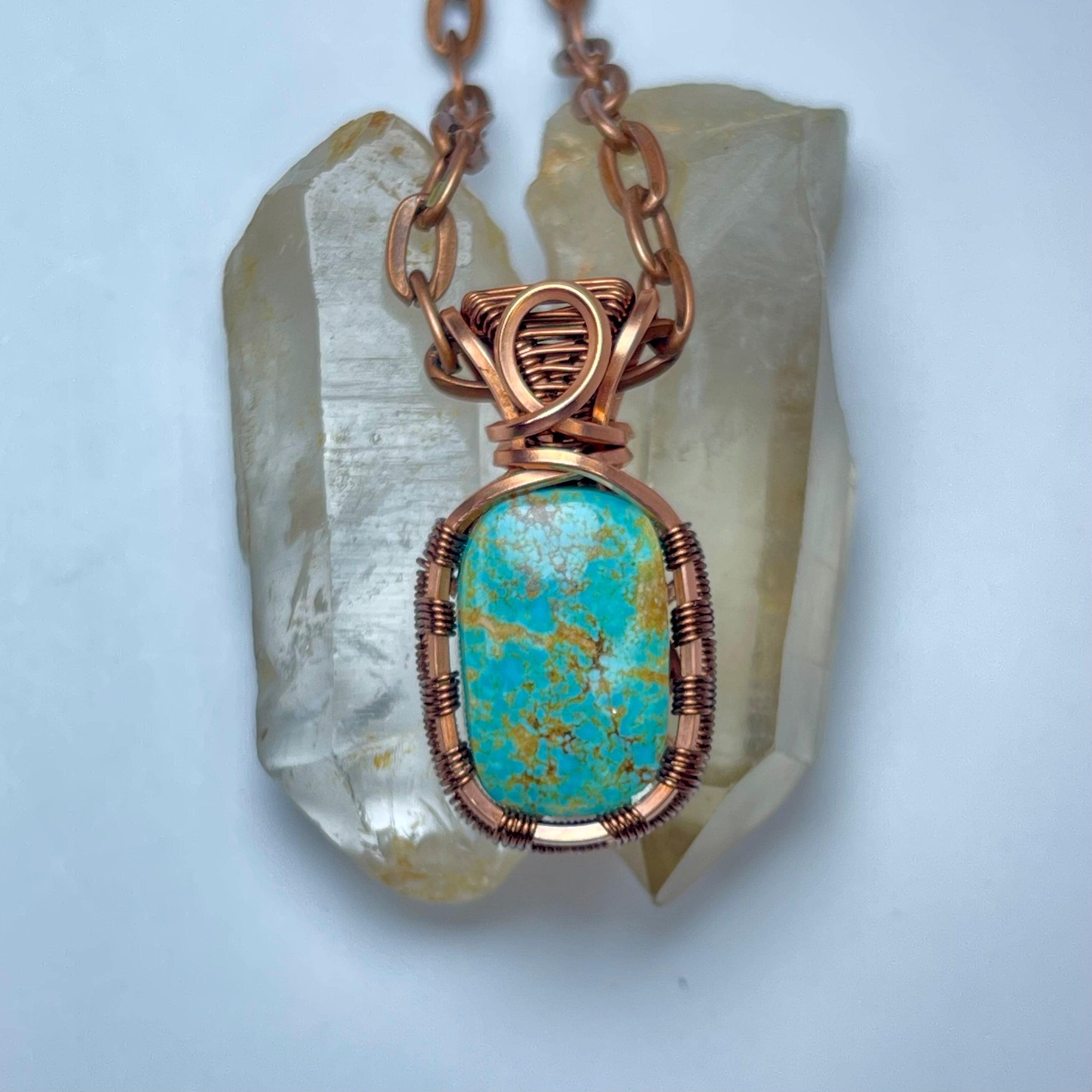 Handmade Boho Copper & Turquoise Wire Wrapped Pendant