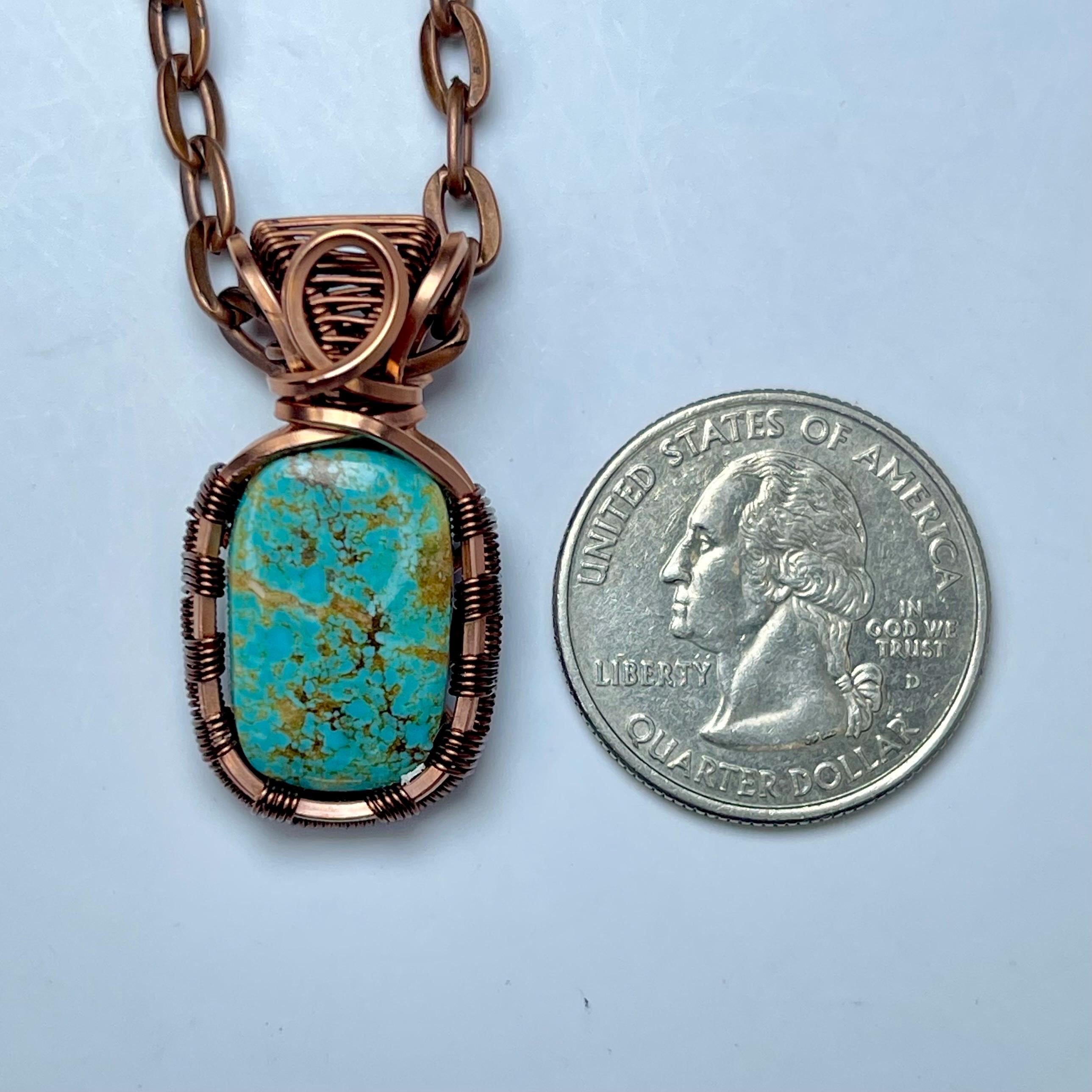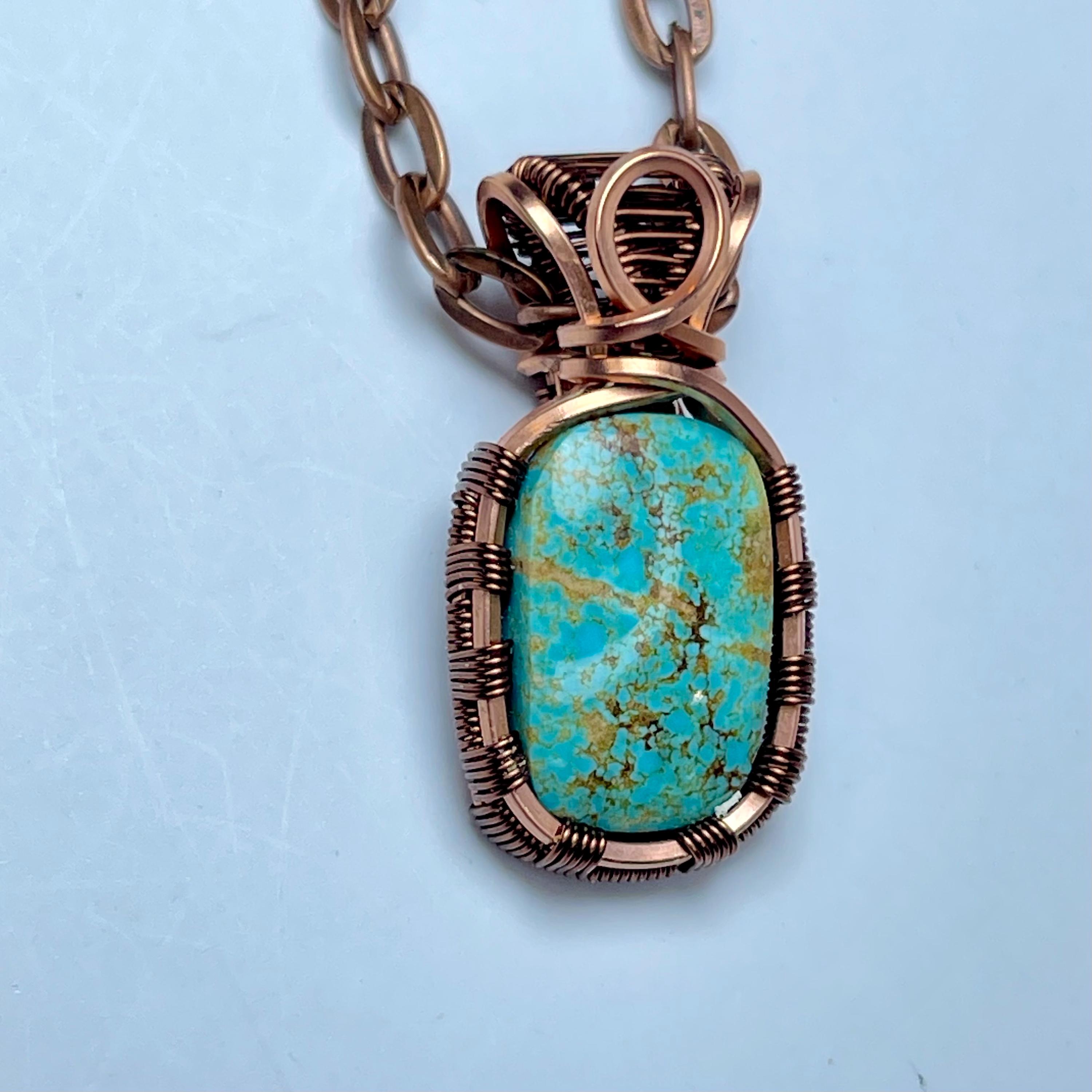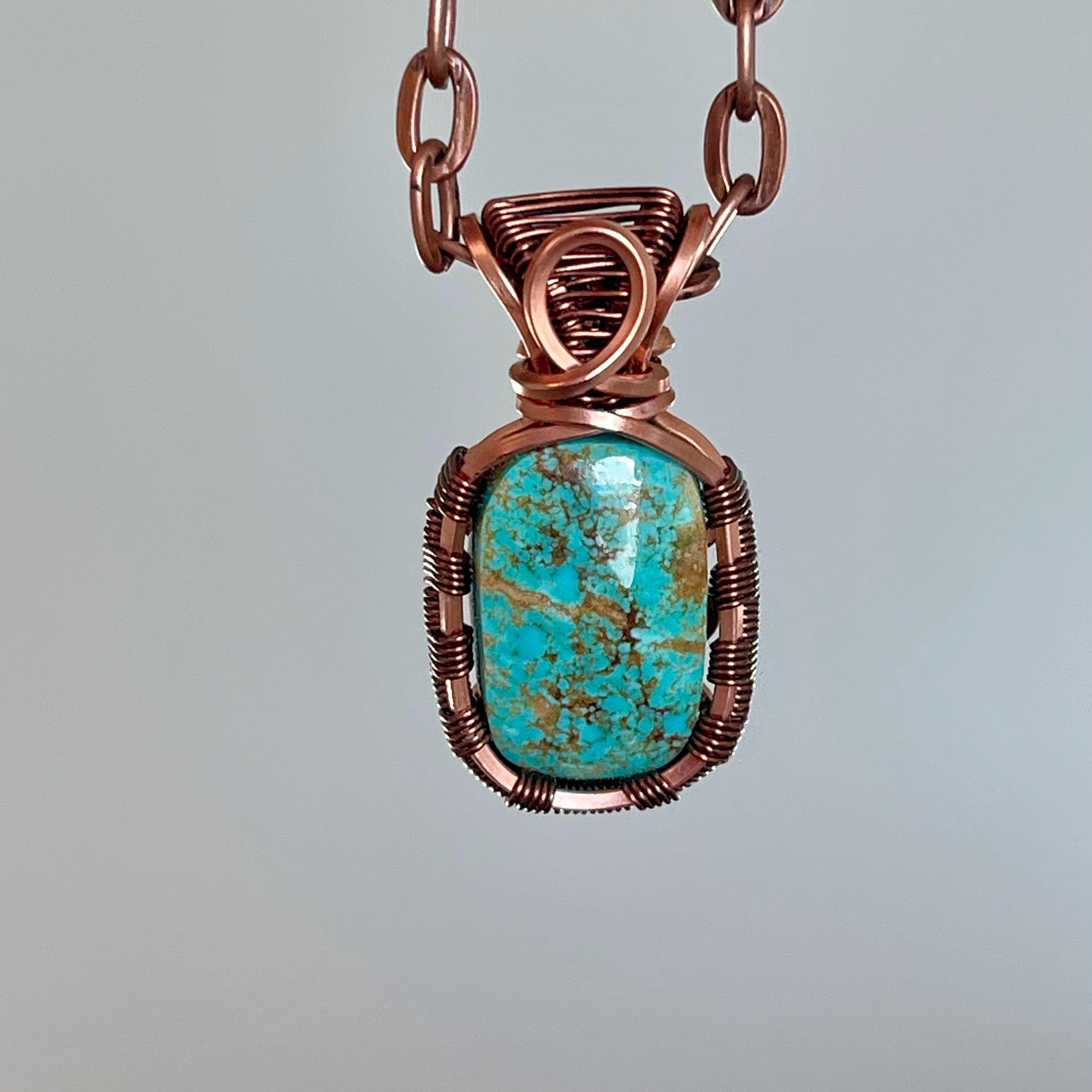 Handmade Boho Copper & Turquoise Wire Wrapped Pendant