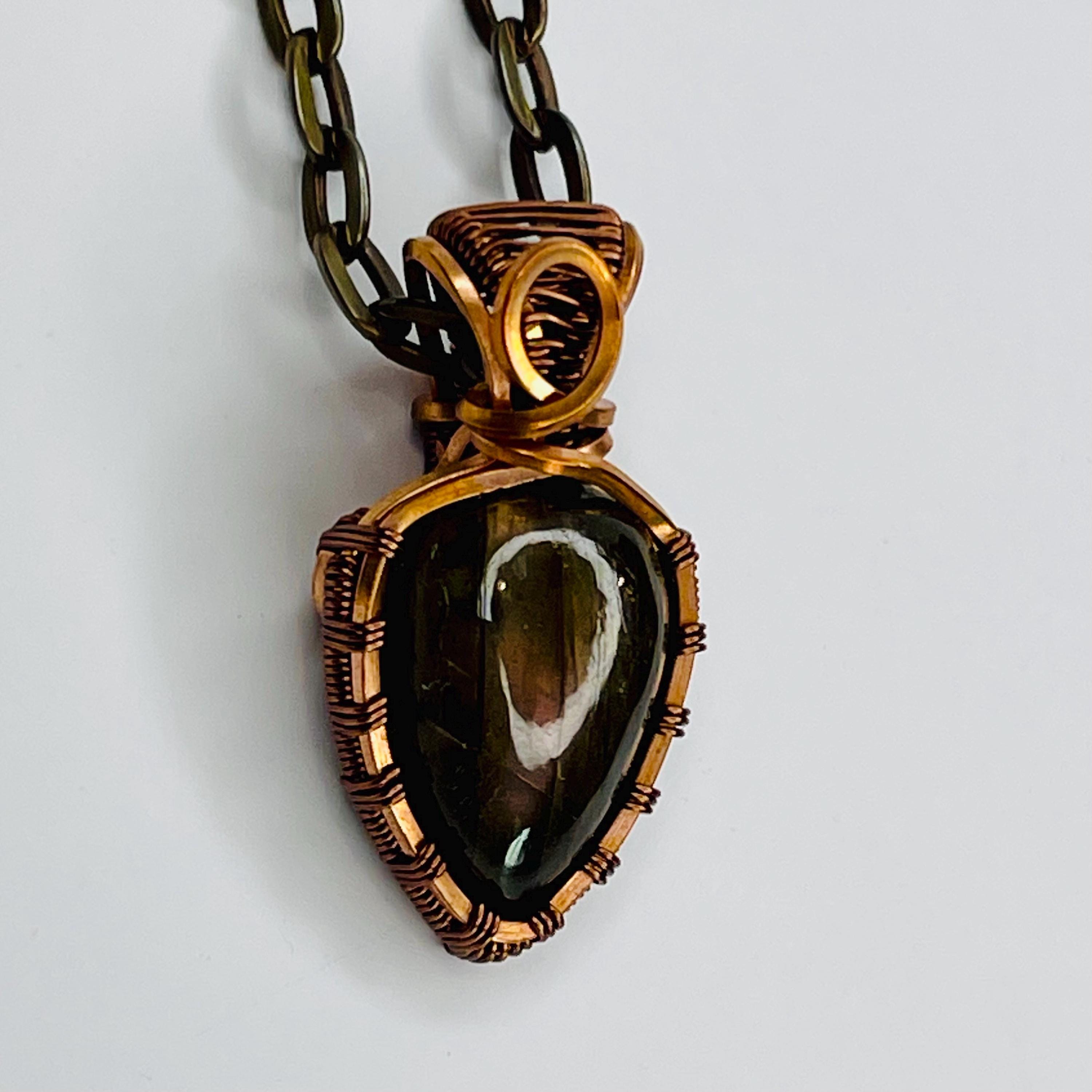 Handmade Flashy Labradorite Copper Pendant: Boho Wire Wrap Necklace