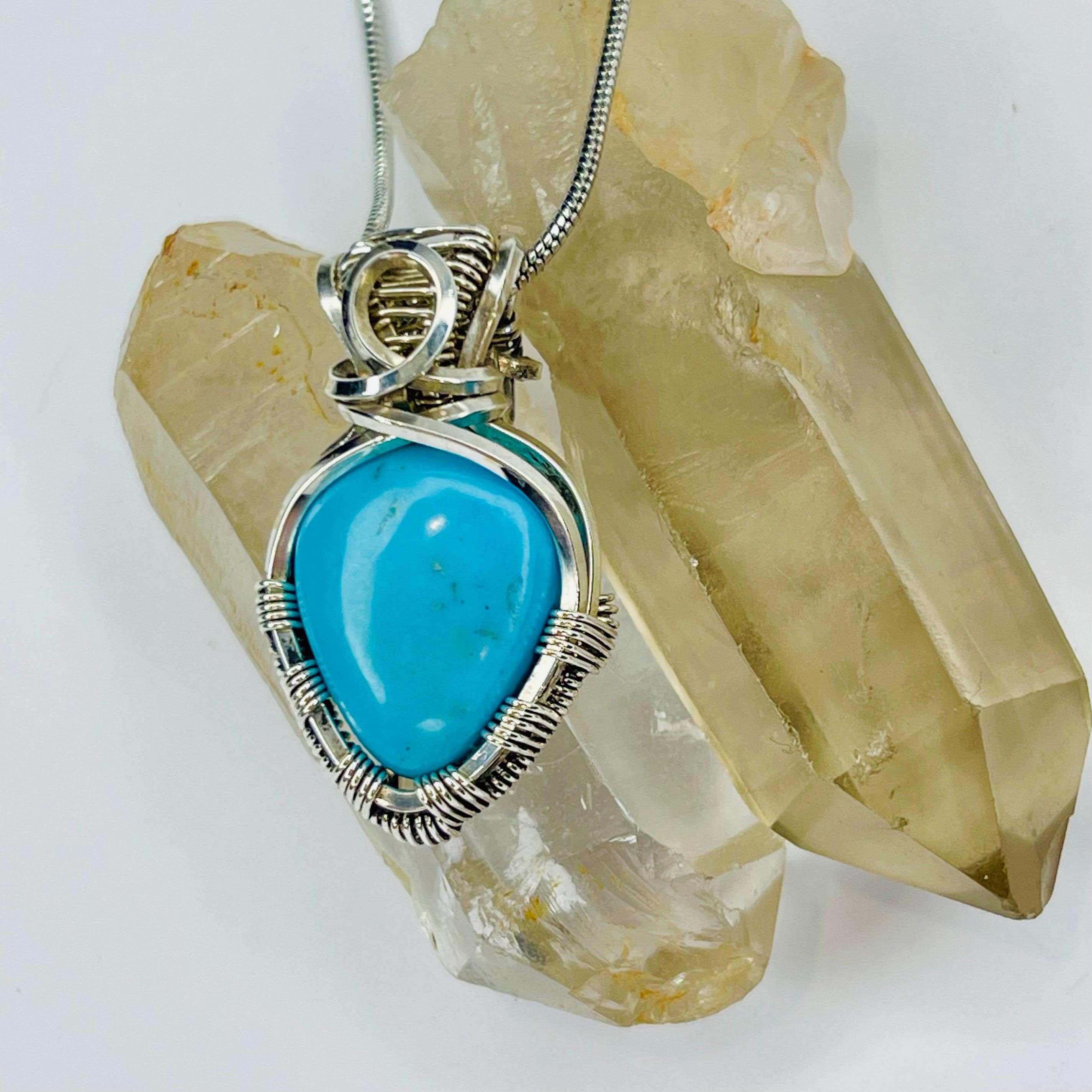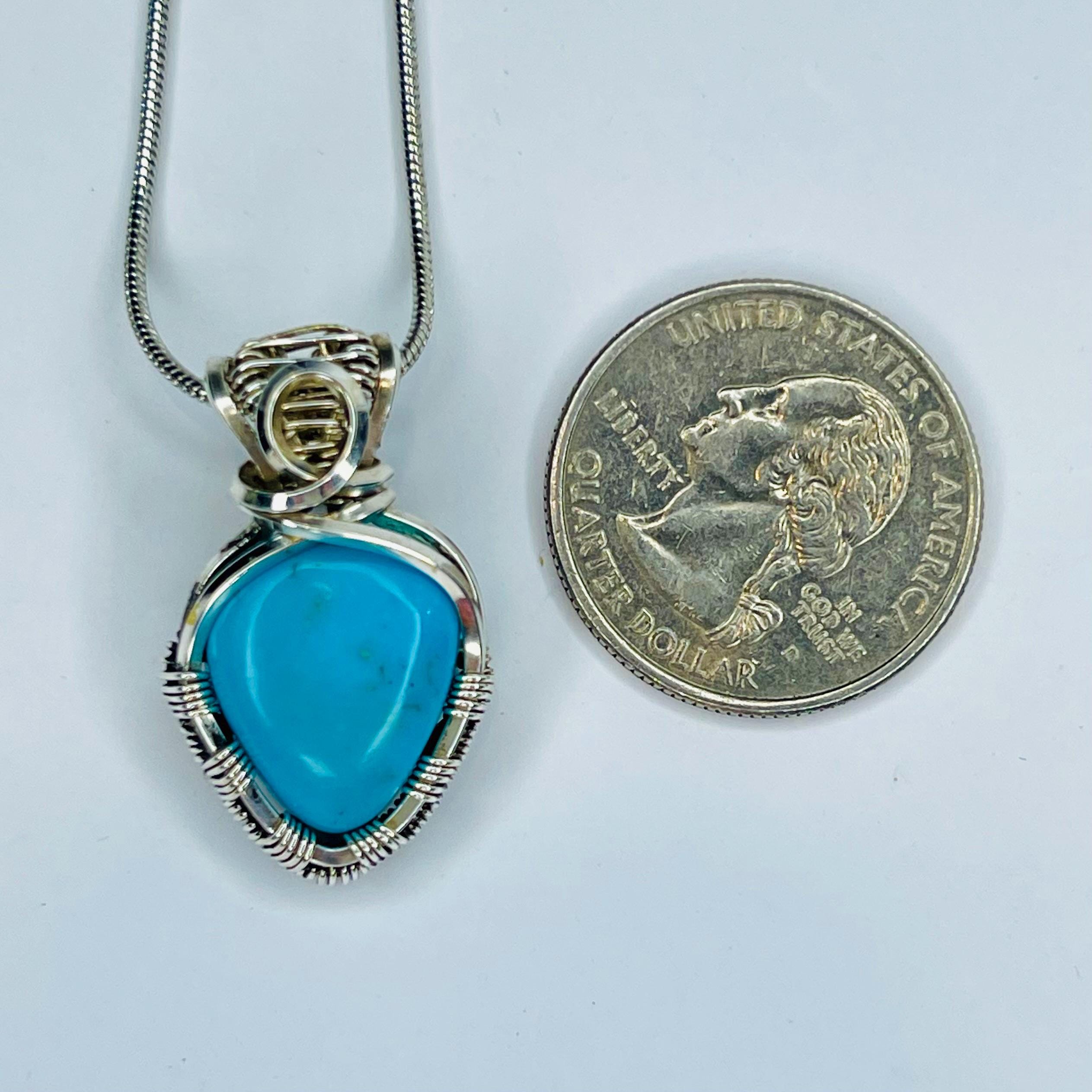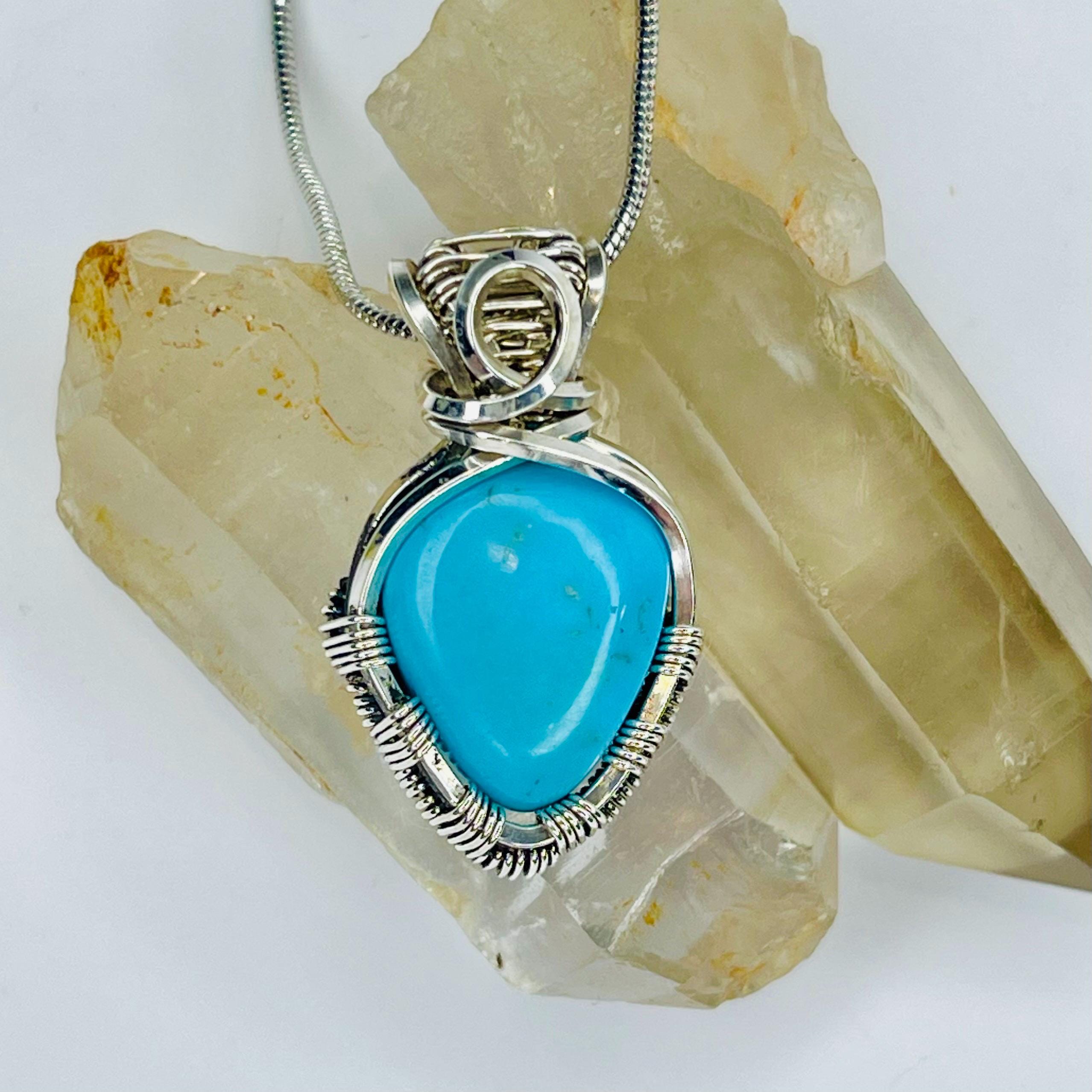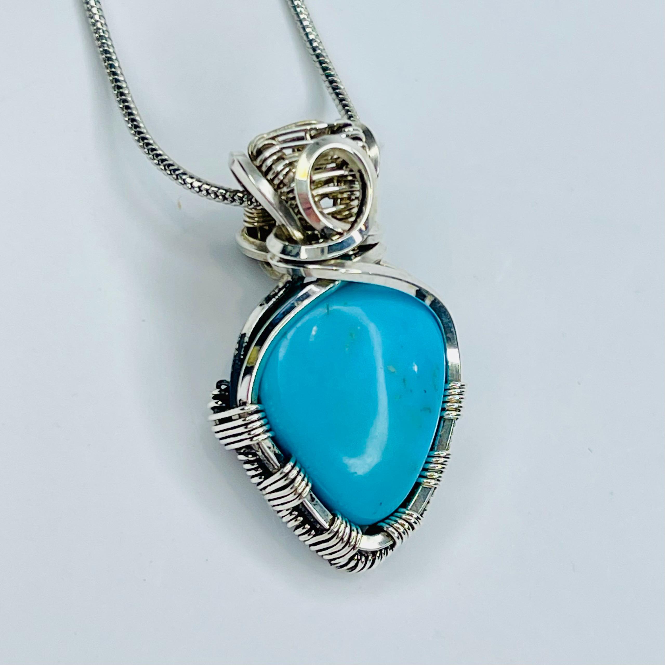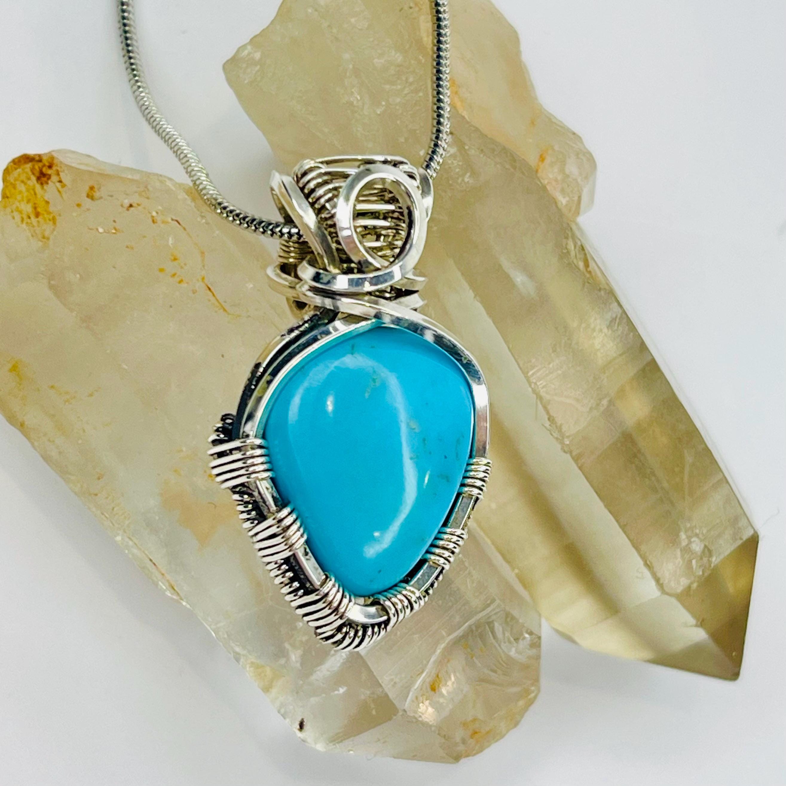 Handmade Boho Silver & Turquoise Wire Wrapped Pendant