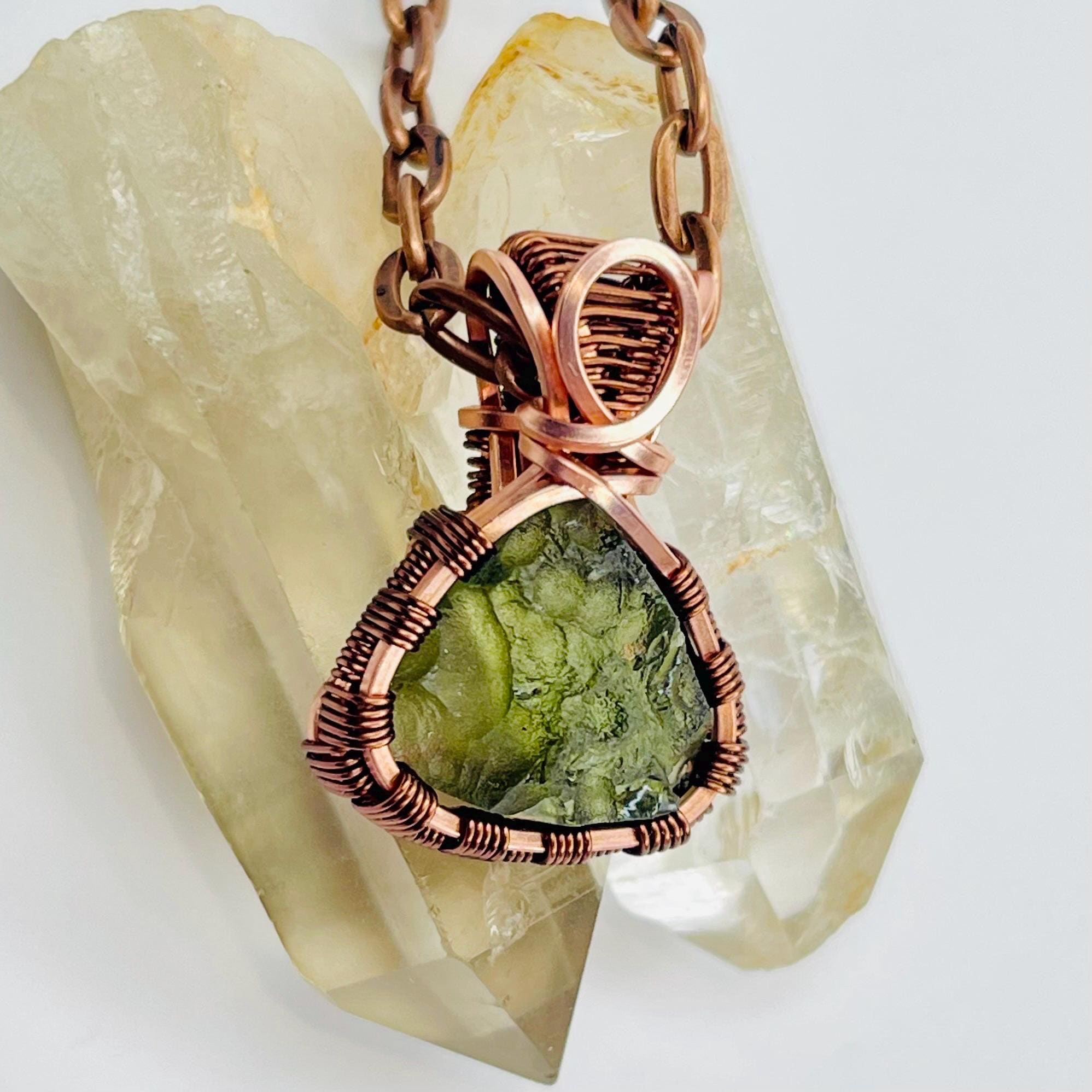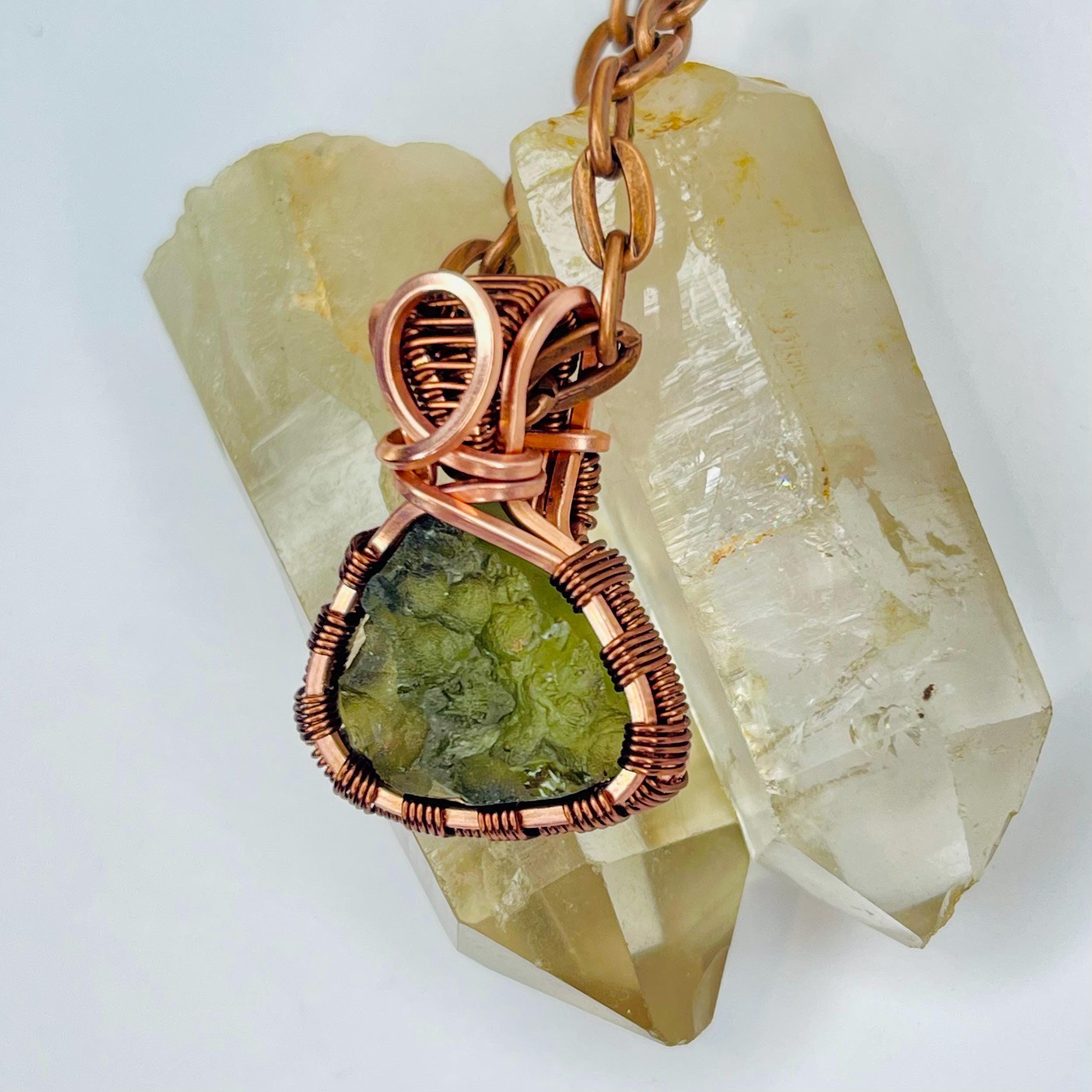 Moldavite Wire Wrapped Pendant